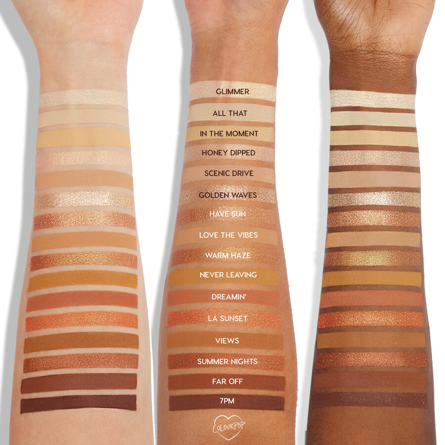 It’s always golden hour with 16 warm sunset golds & bronzes in Matte, Metallic, Pearlescent Glitter, Matte Sparkle and Duo Chrome finishes. Our ultra-pigmented pressed powder formula is long-lasting, feels velvety, applies evenly and blends like a dream. Perfect to travel with, create easy everyday looks or bronze sunset eyes with just one palette!